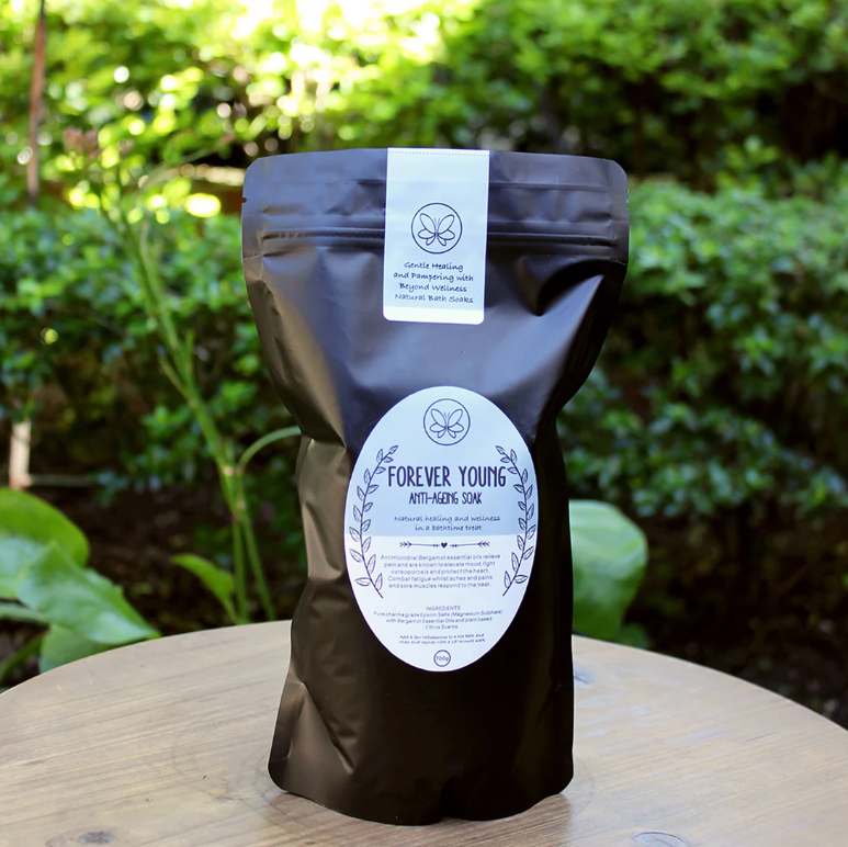 We love the aging process, and the benefits of getting older far outweigh the natural niggles like sore joints, and a slower thought process. Beyond Wellness presents Forever Young, and Epsom Salt soak with amazing Anti-Microbial Bergamot Essential oils, known to assist our bone health, soothe those joints and sharpen the brain. Bergamot fights off osteoporosis and combats fatigue. A great friend, and a great treat!